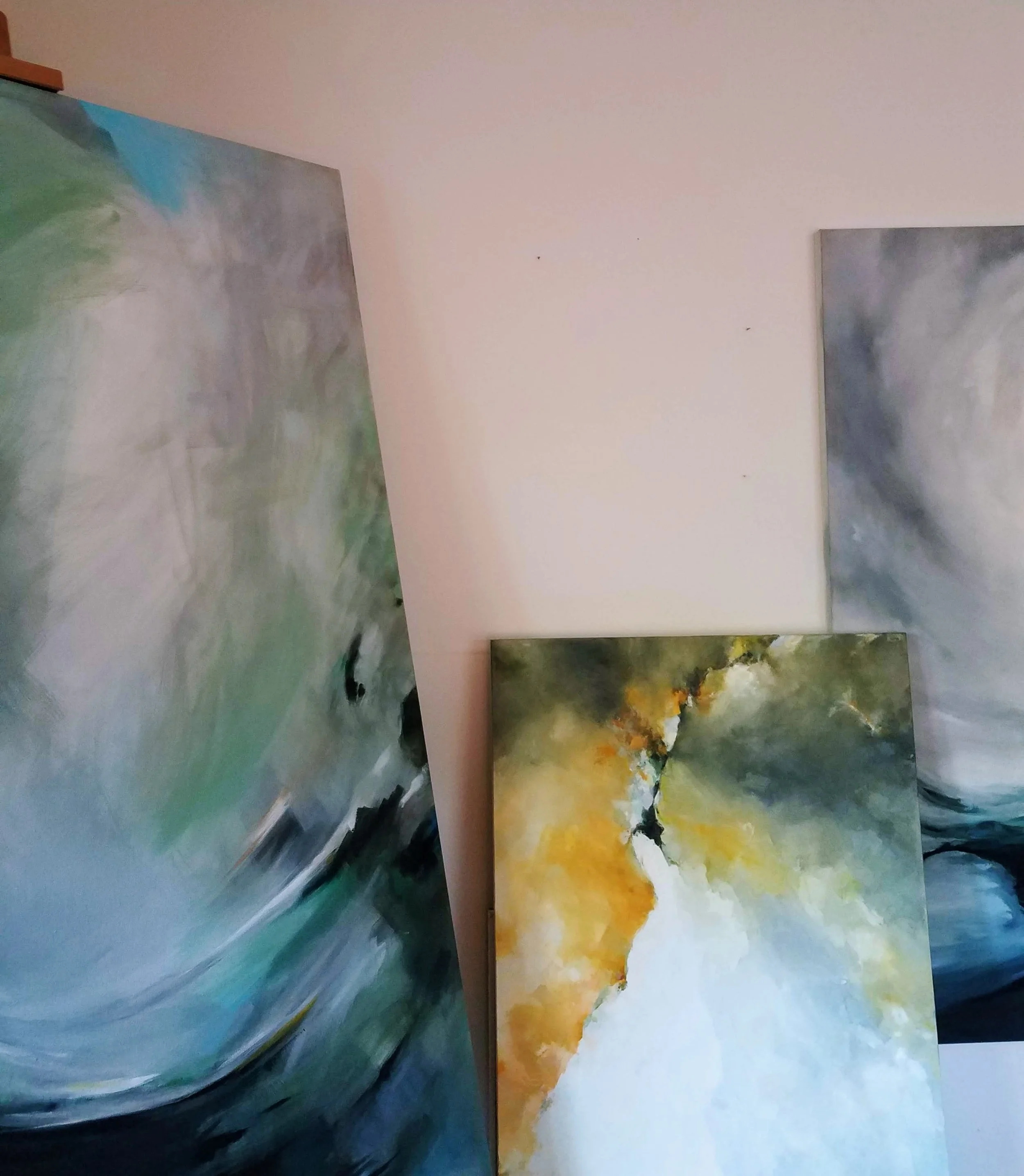 These abstracts are all largeR scale Pieces. Grace paints 2 - 3 abstract pieces a year.