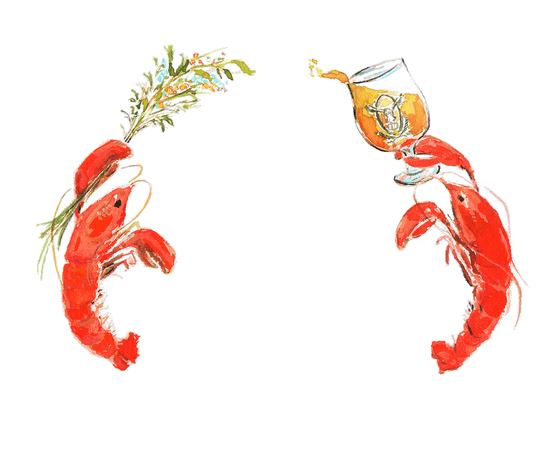 hors d’oeuvres and drinks in watercolor to showcase what will be served at your event.