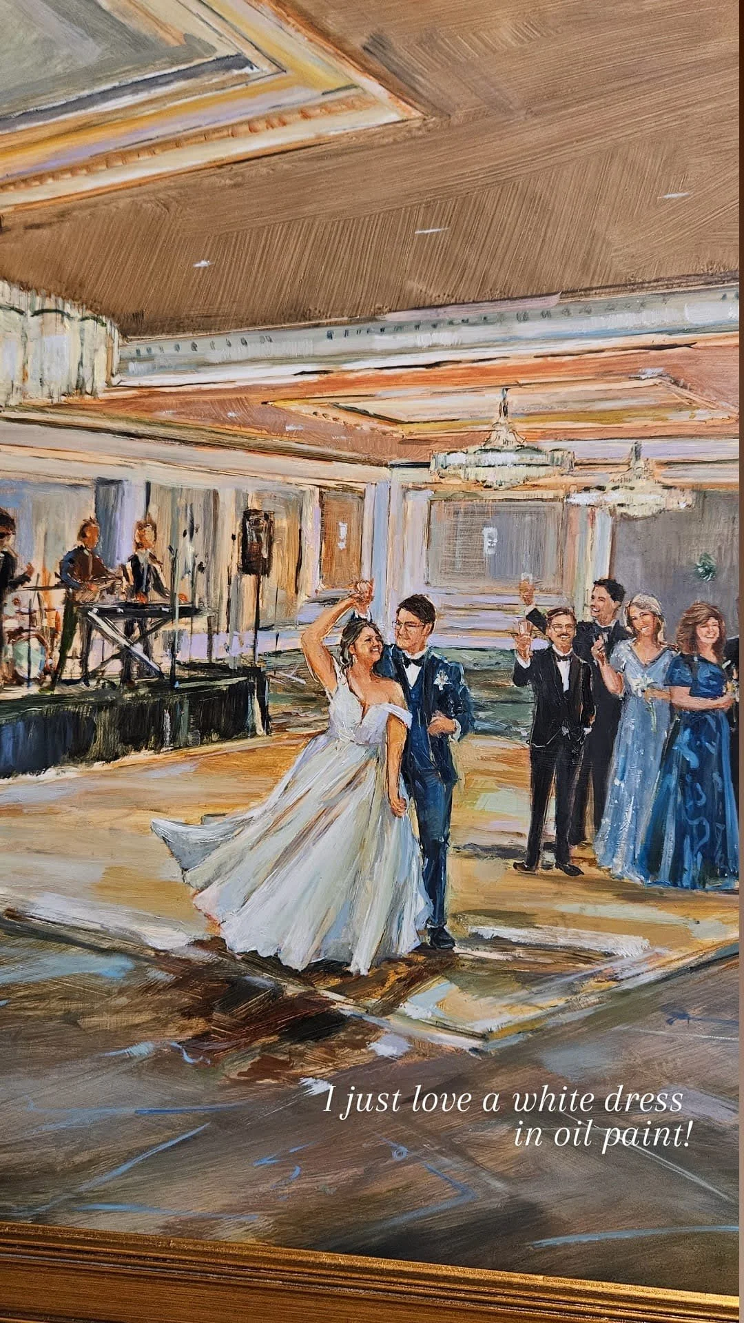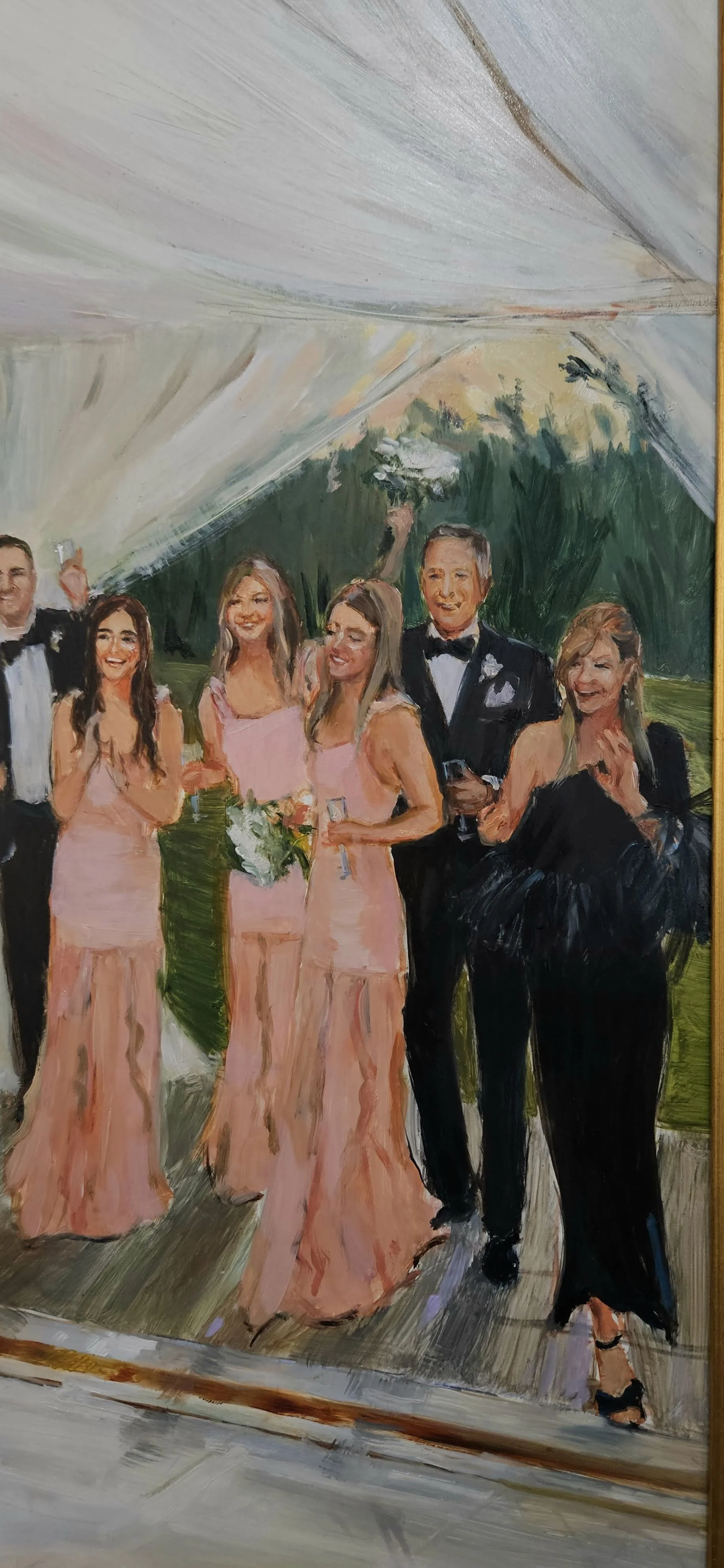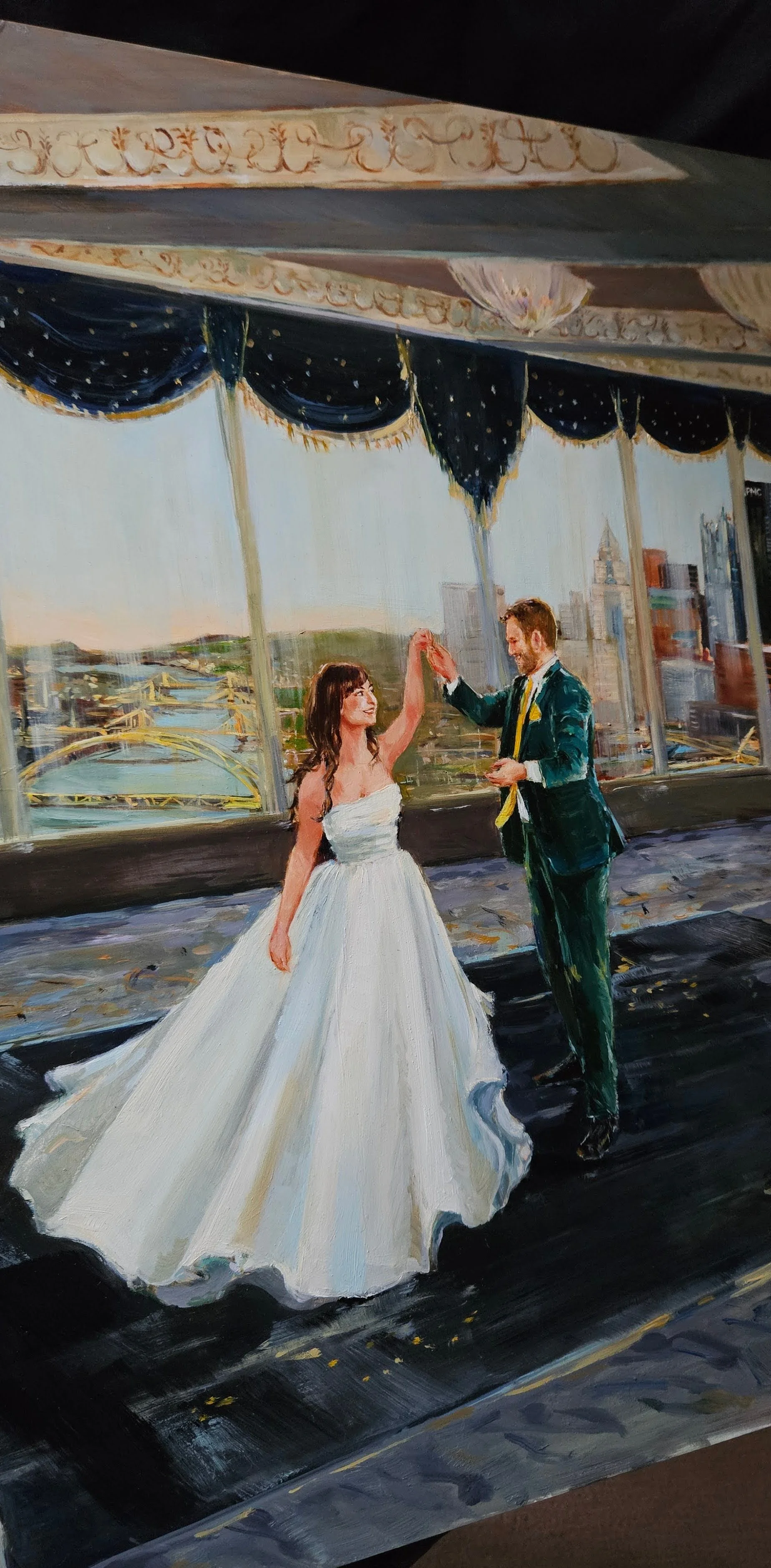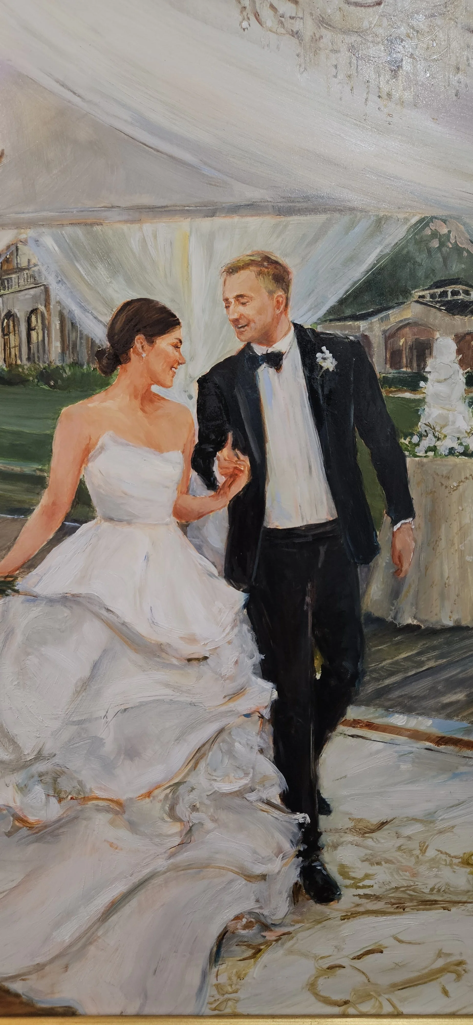 All of Grace’s live wedding paintings (and in-studio-commissioned wedding paintings) are done in oil paint.