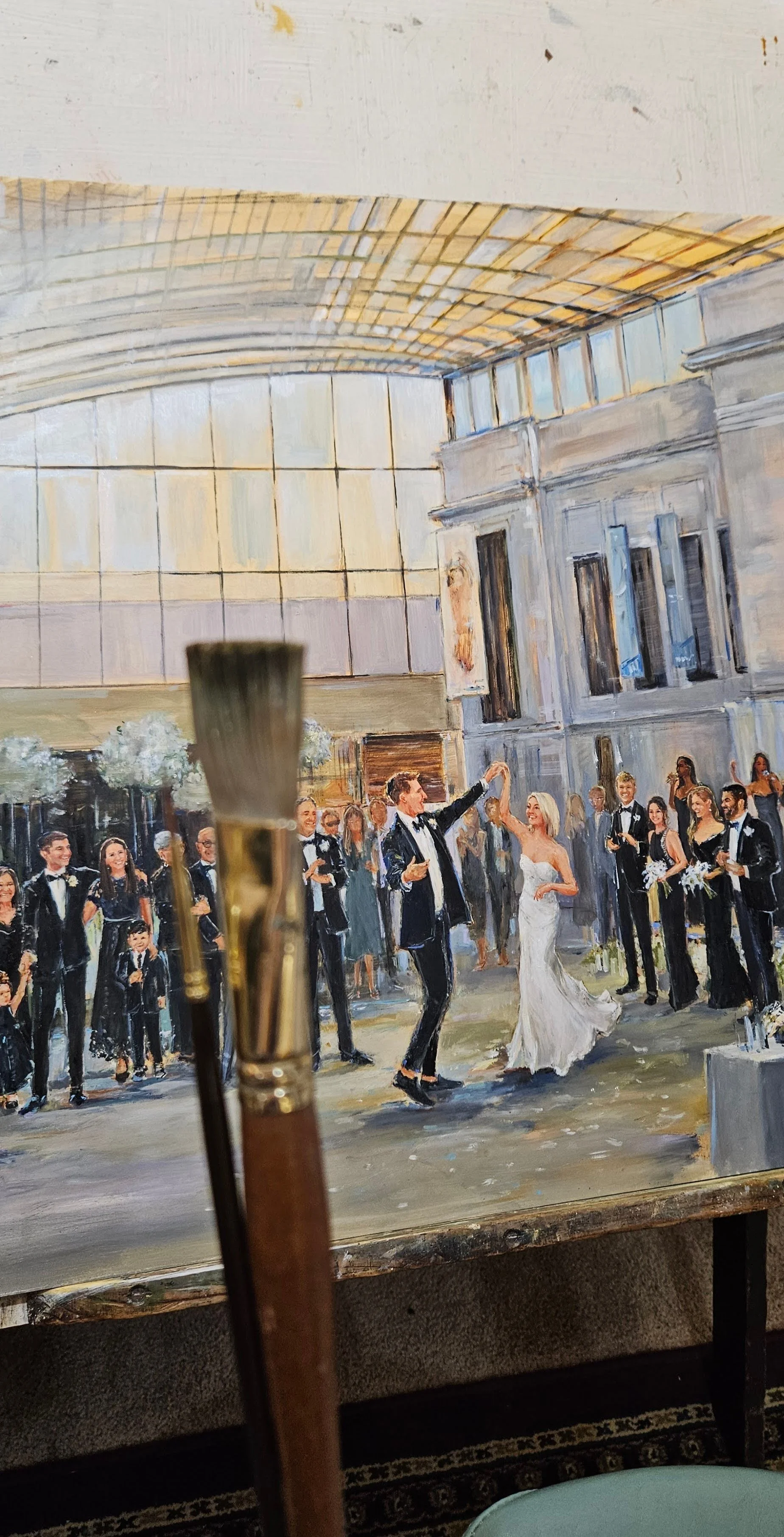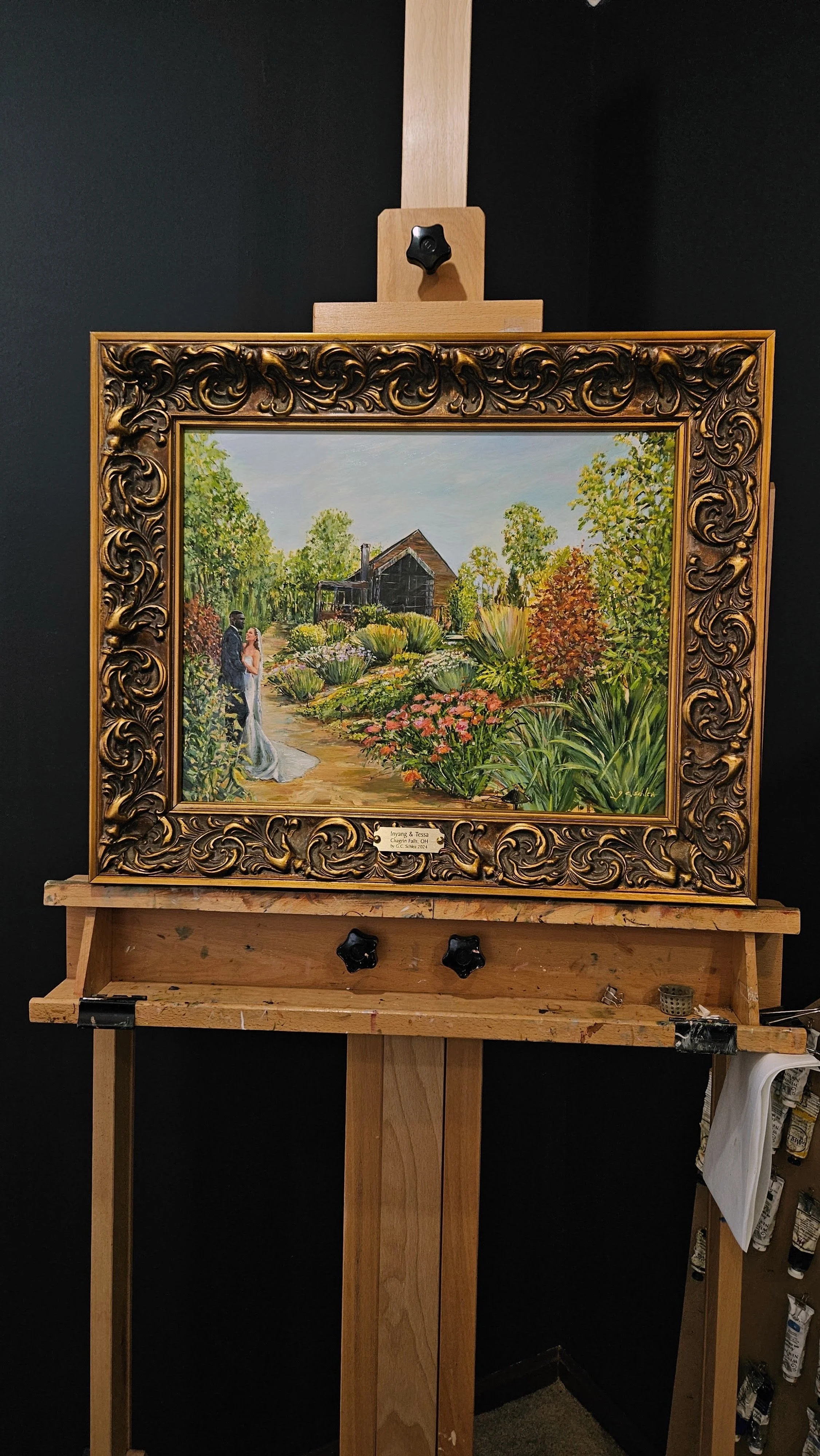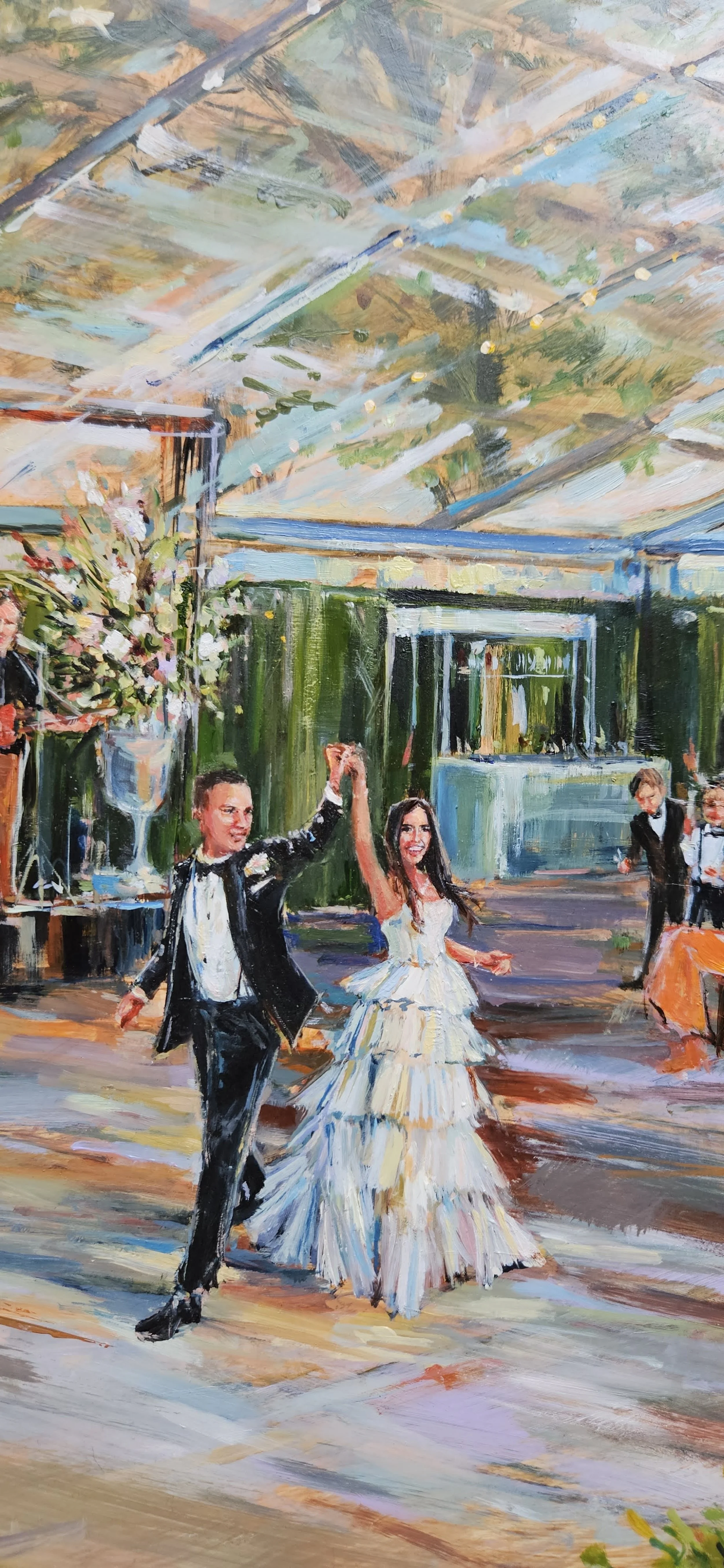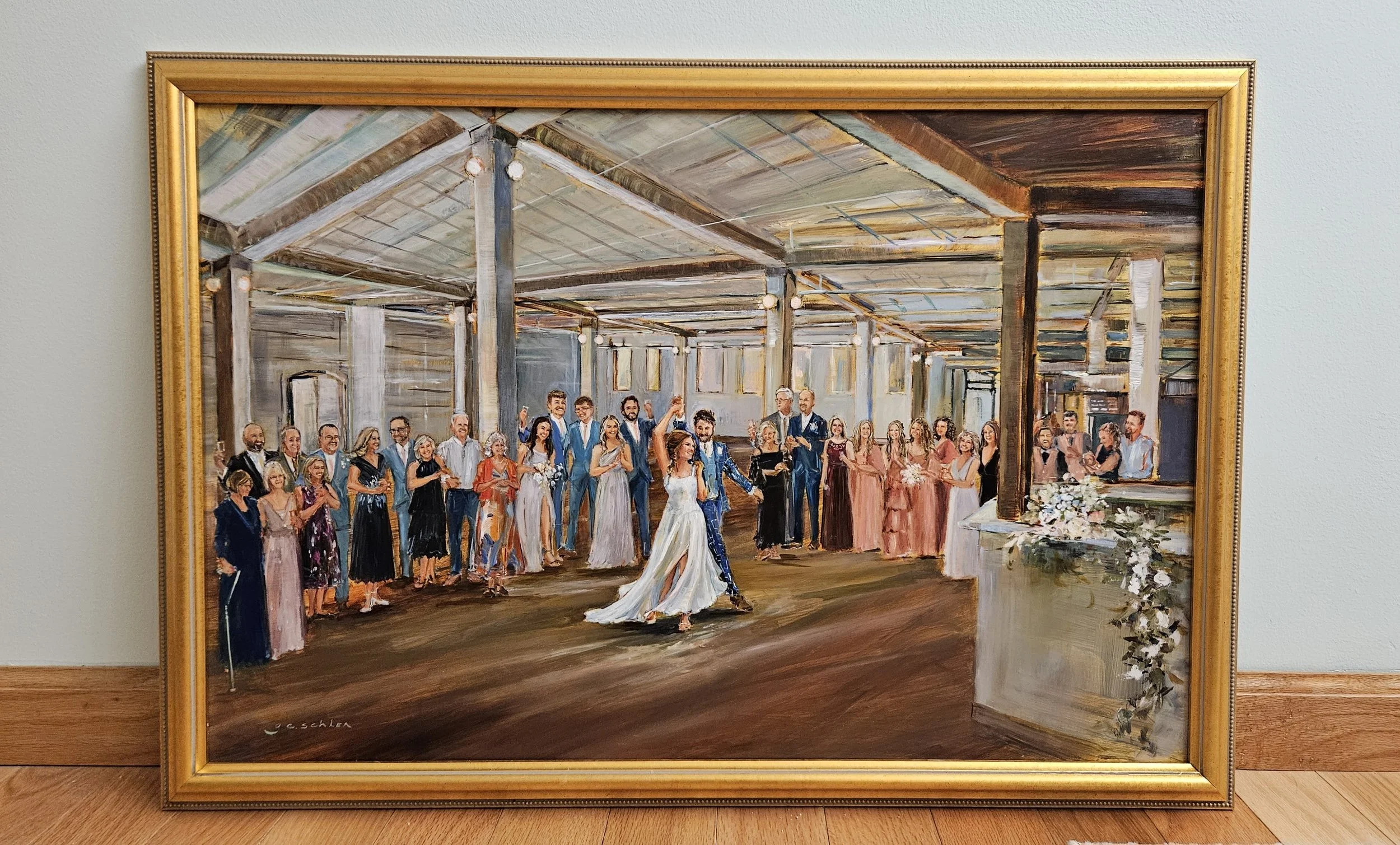 All of Grace’s live wedding paintings (and in-studio-commissioned wedding paintings) are done in oil paint.