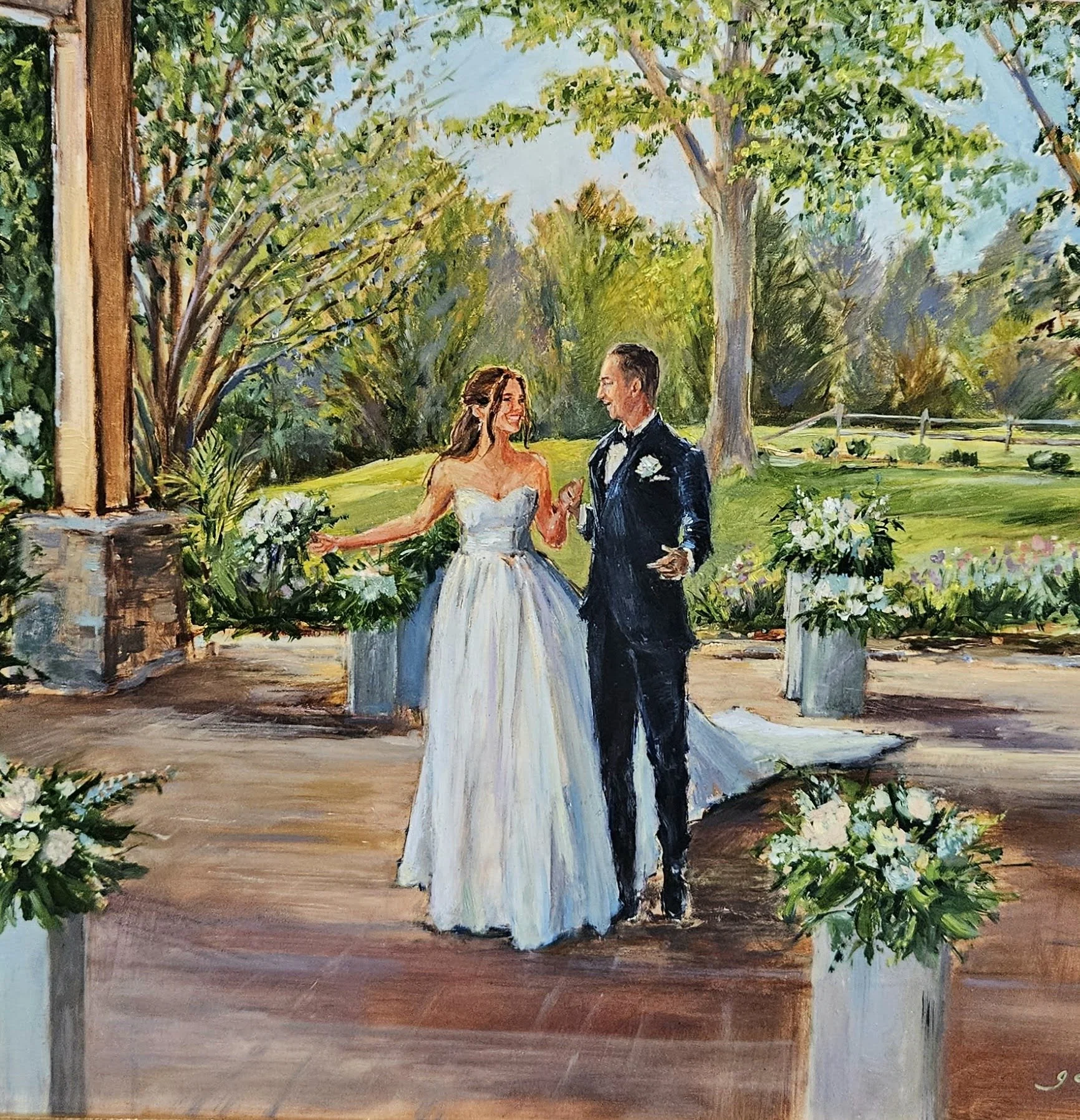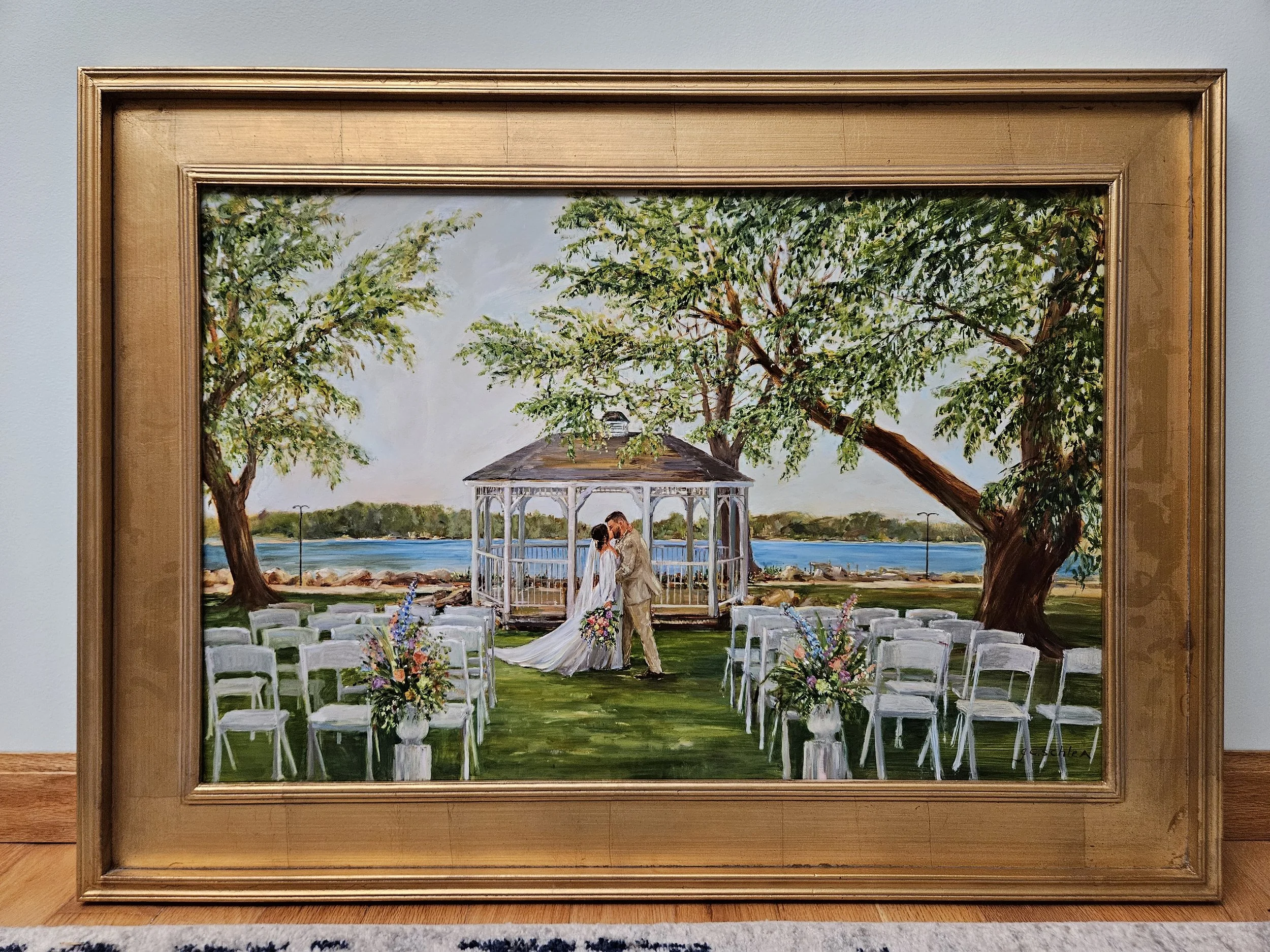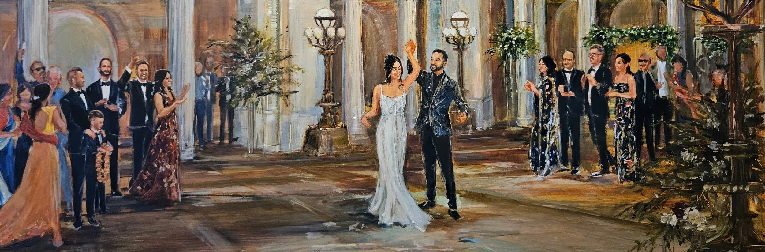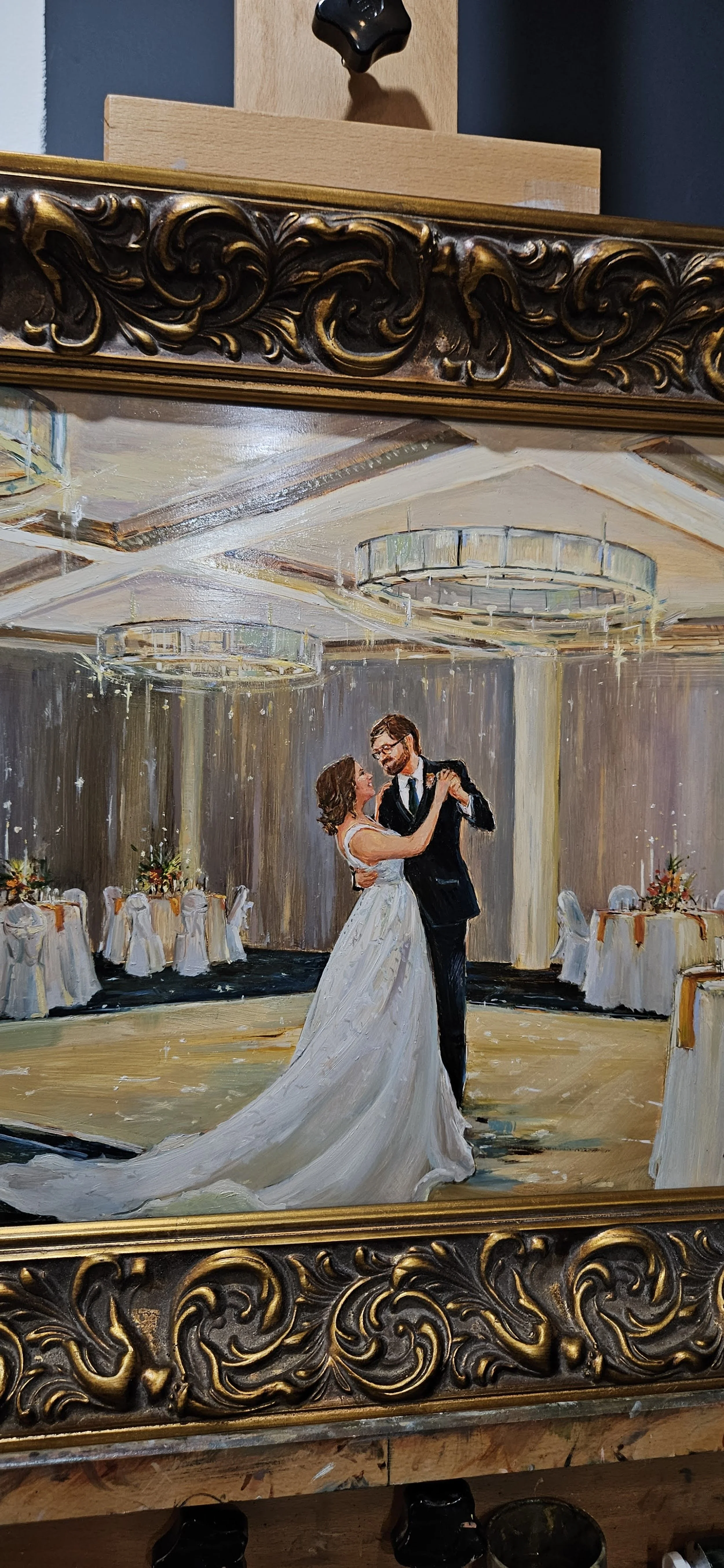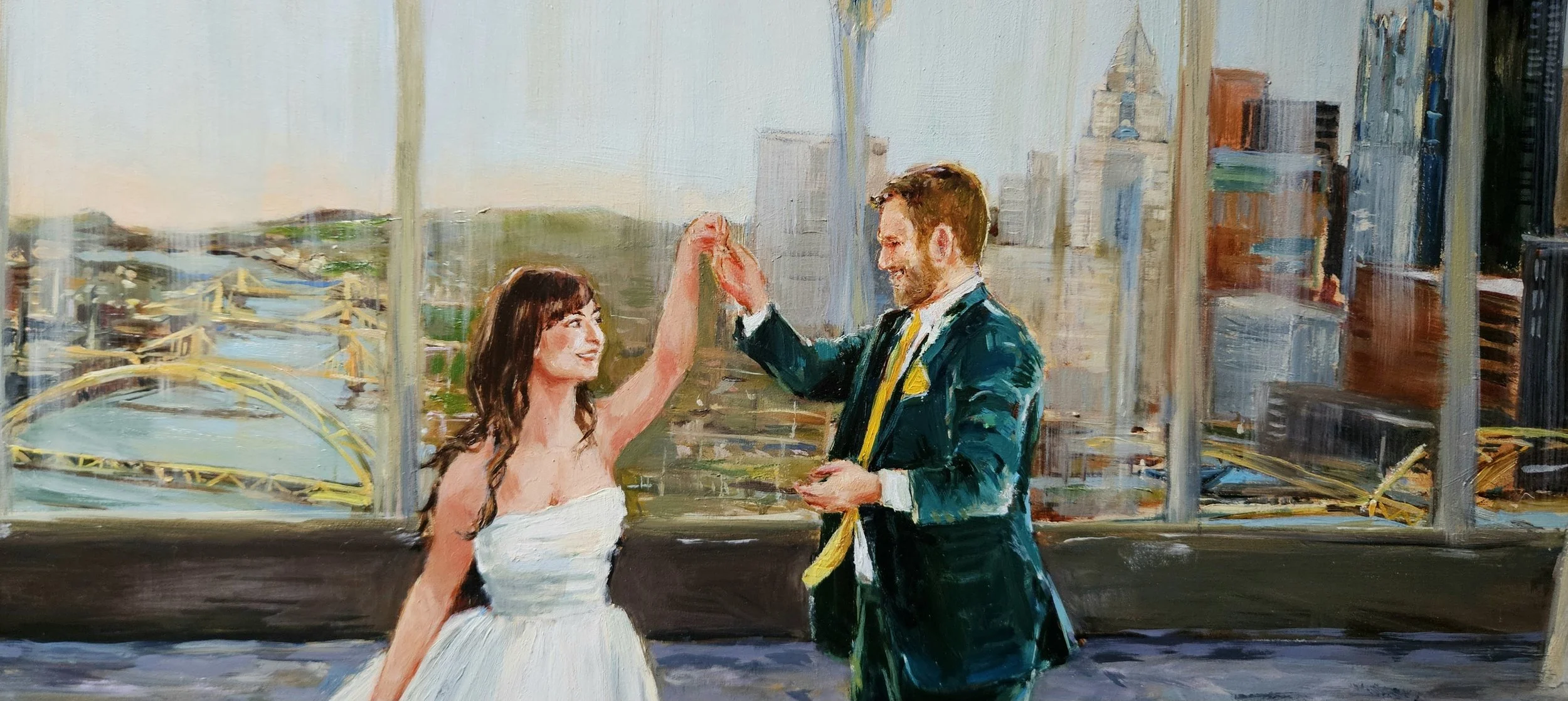 All of Grace’s live wedding paintings (and in-studio-commissioned wedding paintings) are done in oil paint.