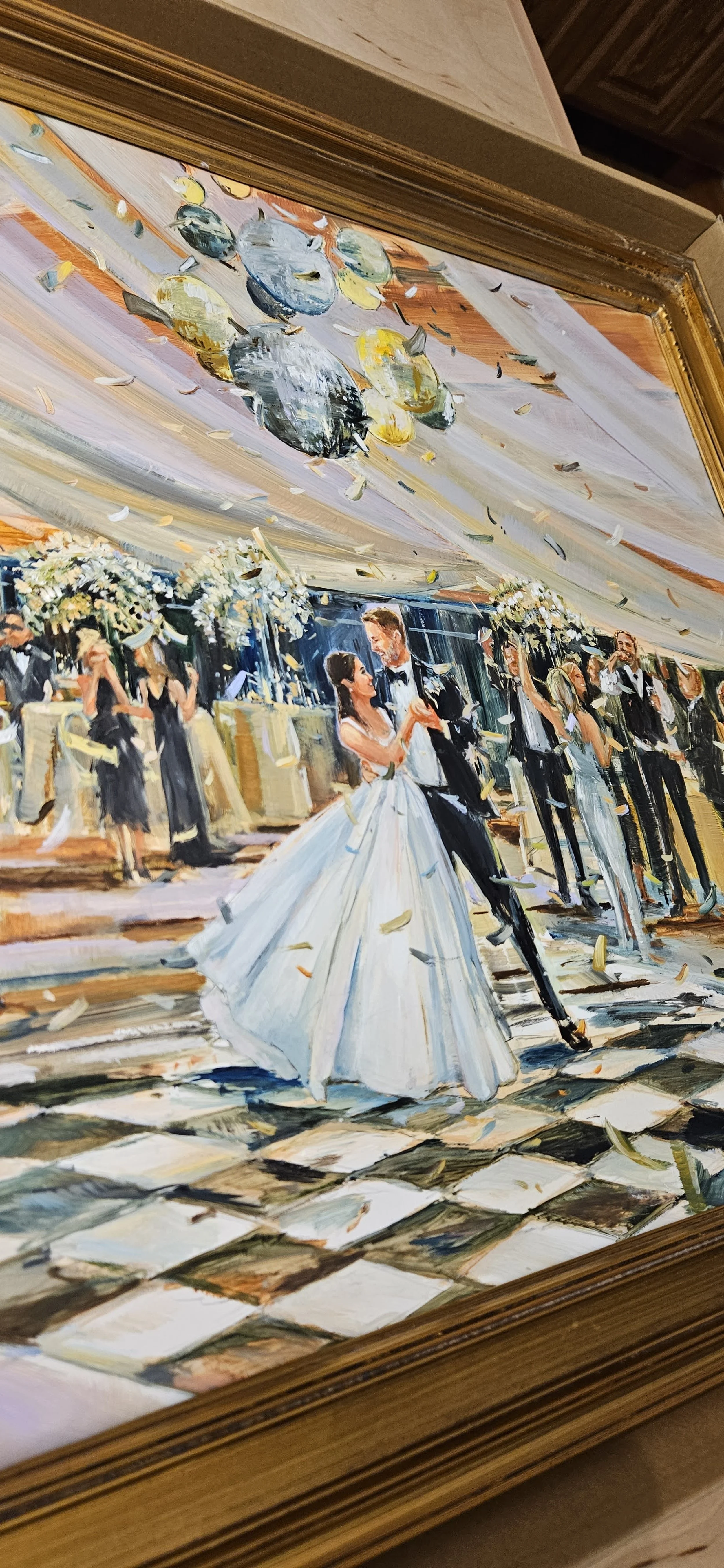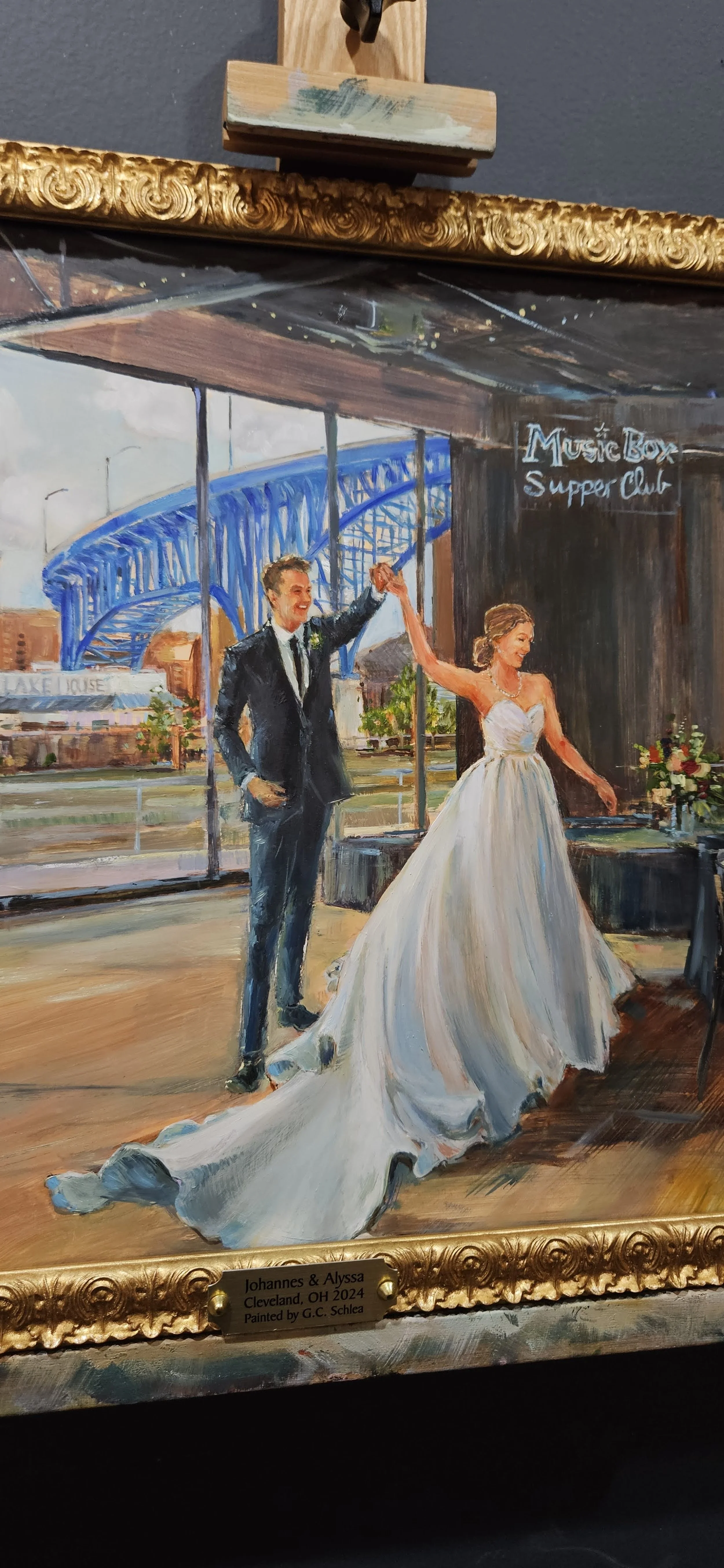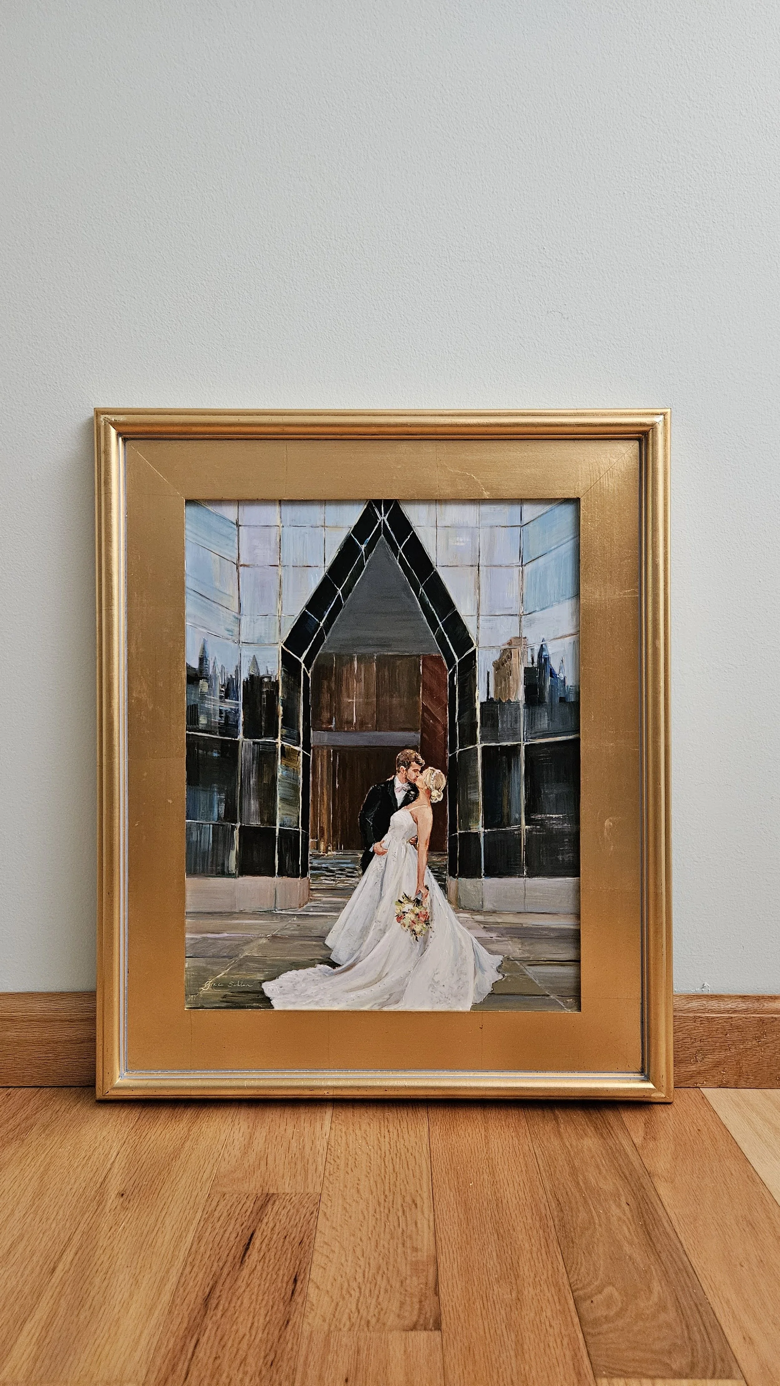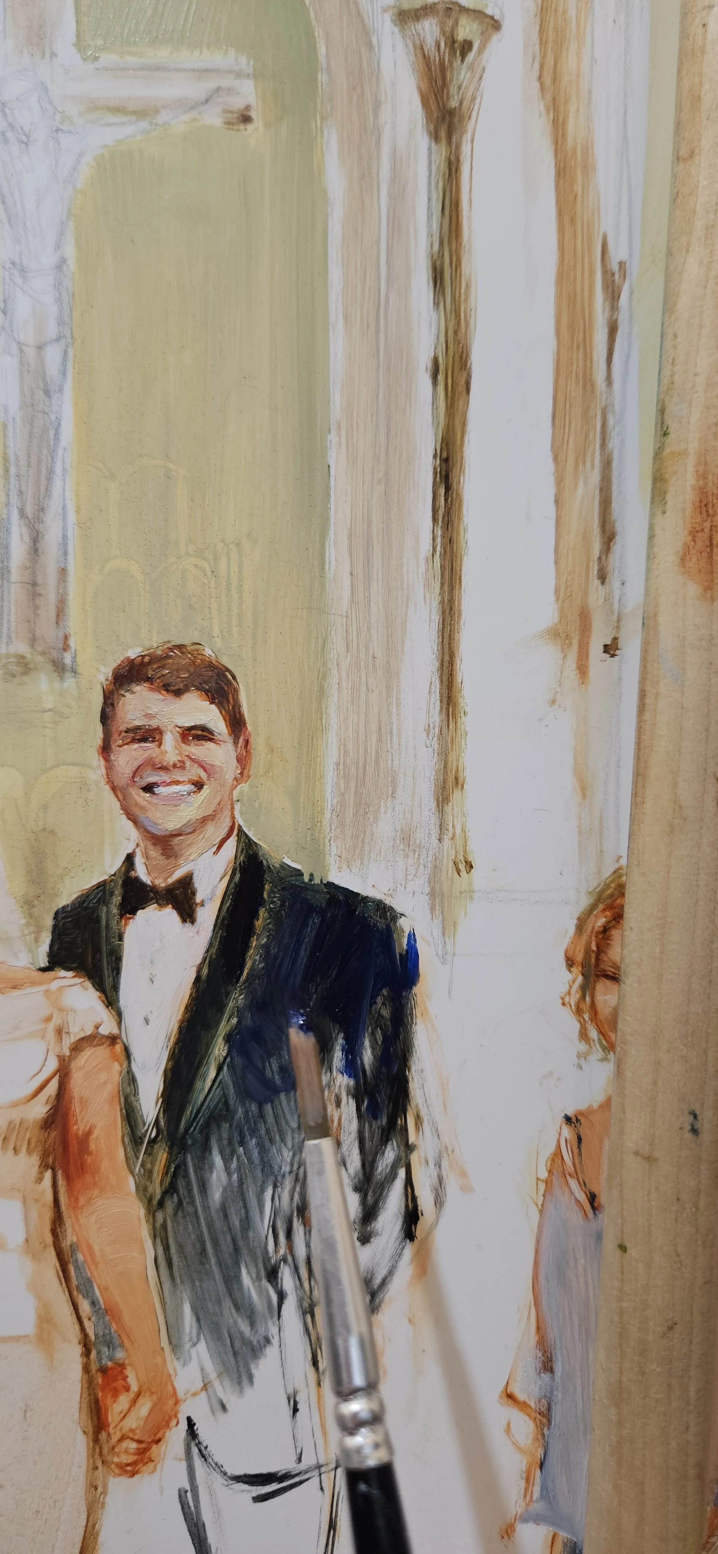 All of Grace’s live wedding paintings (and in-studio-commissioned wedding paintings) are done in oil paint.
